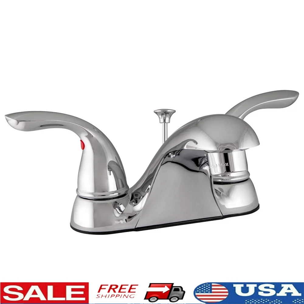 Смеситель для ванной комнаты с двойной ручкой, 4-дюймовый центральный элемент, хромированная отделка, латунь, водные пути, высокий излив, частота потока 1,2 галлона в минуту, прочная керамика