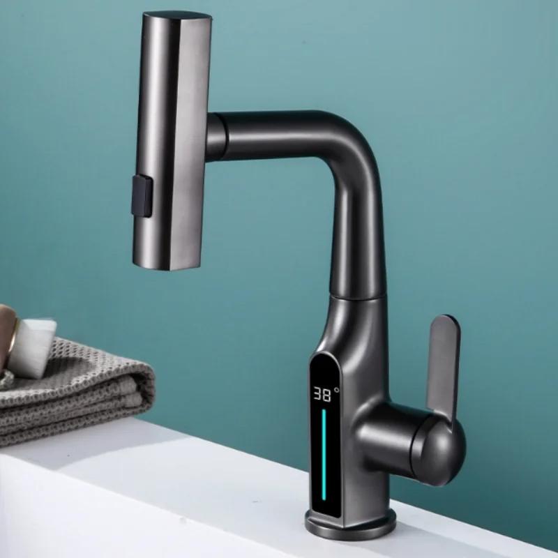 Смеситель для раковины с водопадом, температура, цифровой дисплей, подъем вверх, вниз, 3 режима, распылитель потока, смеситель для раковины, горячей и холодной воды, кран для мытья