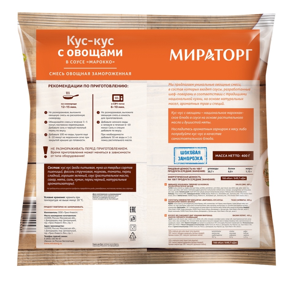 Смесь овощная Мираторг Кус-кус с овощами в соусе Марокко замороженная 400 г