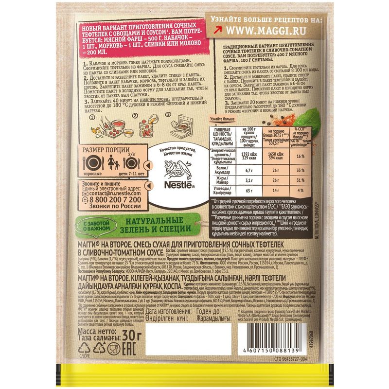 Смесь приправ Maggi На второе для сочных тефтелек в сливочно-томатном соусе, 30 г