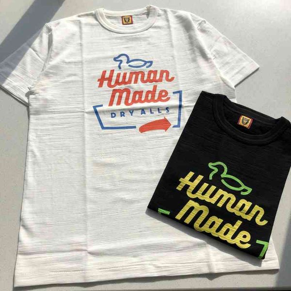 correct human made 21 spring and summer color duck letter bamboo cotton round short sleeve men's women's couple t-shirt, White