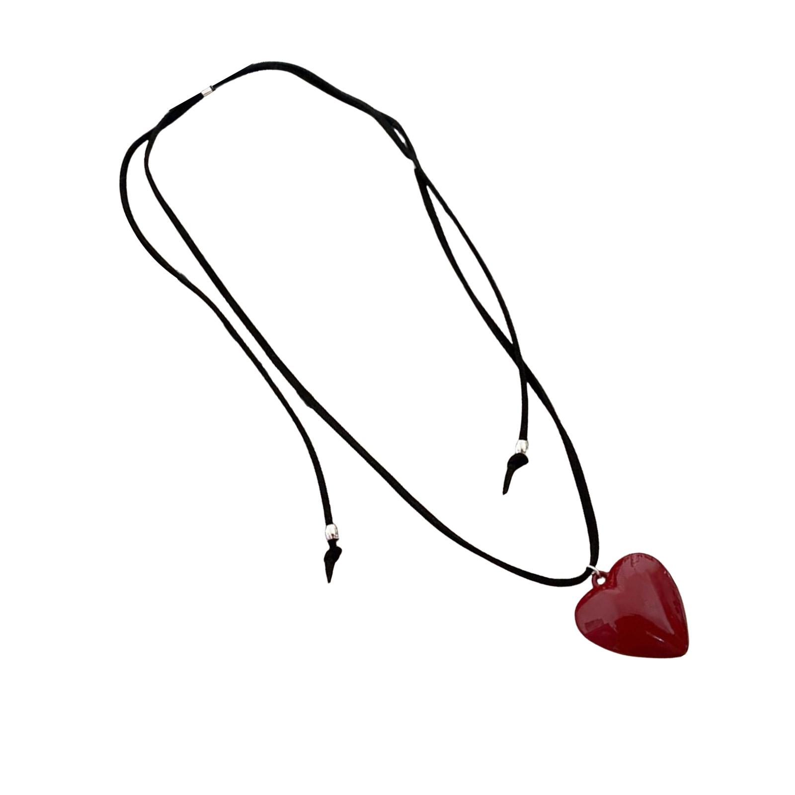 Смокер из смолы в форме сердца с бархатной лентой, регулируемая длина, цепочка на шею, привлекающее внимание ожерелье, ювелирное украшение для модных женщин красный