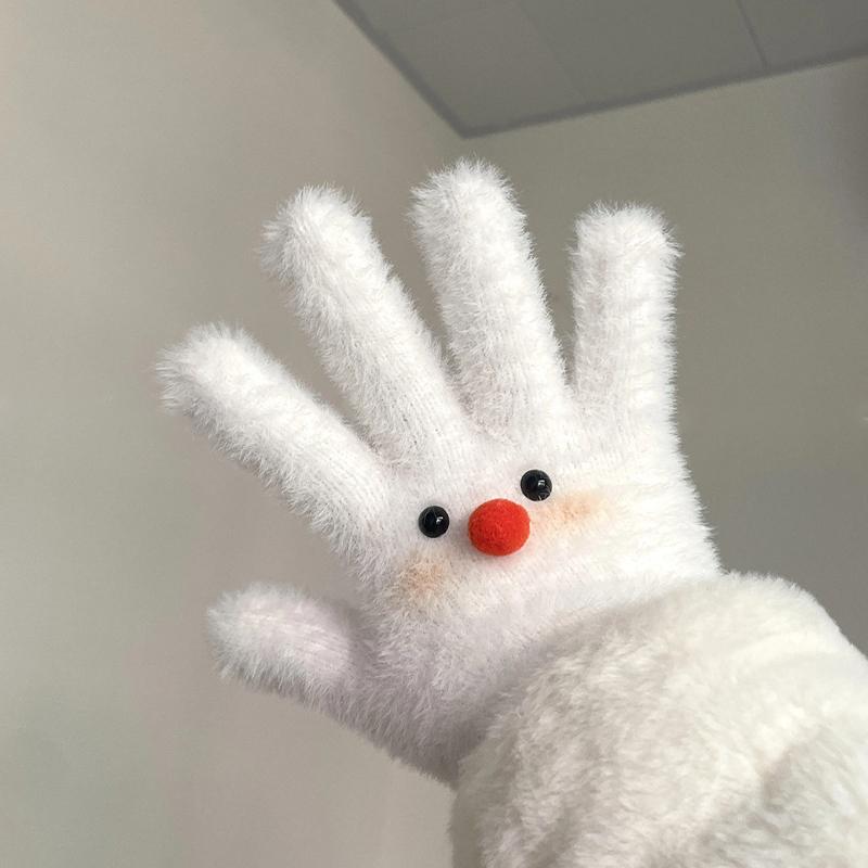 Снеговик Милые Пятипалые Теплые Плюшевые Перчатки Для Женщин Осень И Зима Все-Сочетающиеся Велосипедные Перчатки Для Женщин