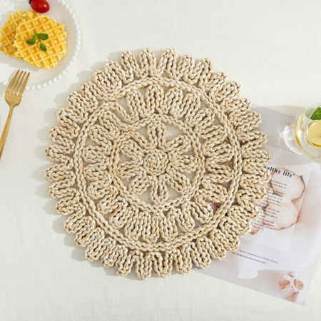 Round Woven Placemats for Dining Table Flower Shape Corn Husk Tablemat Heat-Resistant Anti-Slip Home Decoration