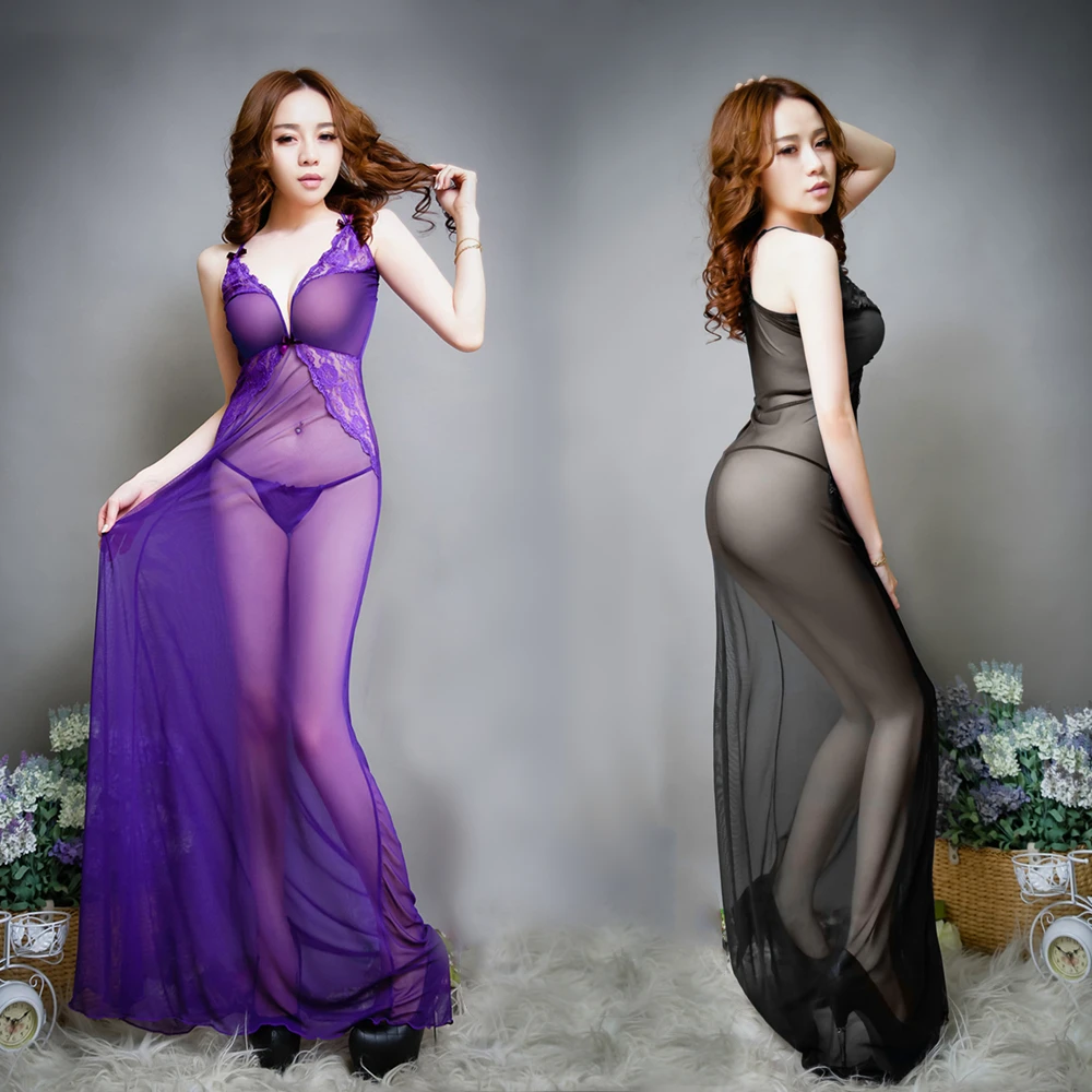 Соблазнительное длинное платье с глубоким V-образным вырезом, женское эротическое нижнее белье, элегантные платья для сна, женская прозрачная сетчатая ночная рубашка для женщин
