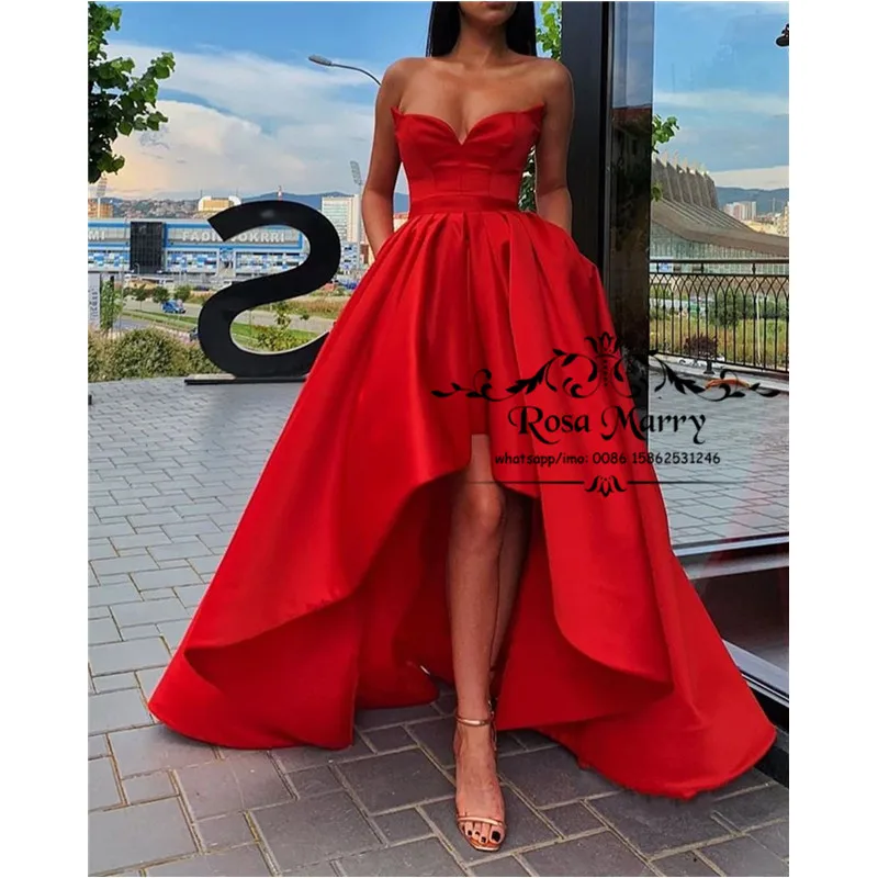 Соблазнительные красные низкие дешевые платья для выпускного вечера, модель 2020 года, трапециевидные Простые Длинные атласные вечерние пла...