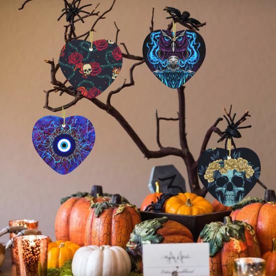 Сова Череп Синее Пламя Хэллоуин Сердце Орнамент Автомобиль Зеркало Заднего Вида Аксессуары Рождественская Елка Орнамент Висит Очарование Интерьер Подвеска Заднего Вида