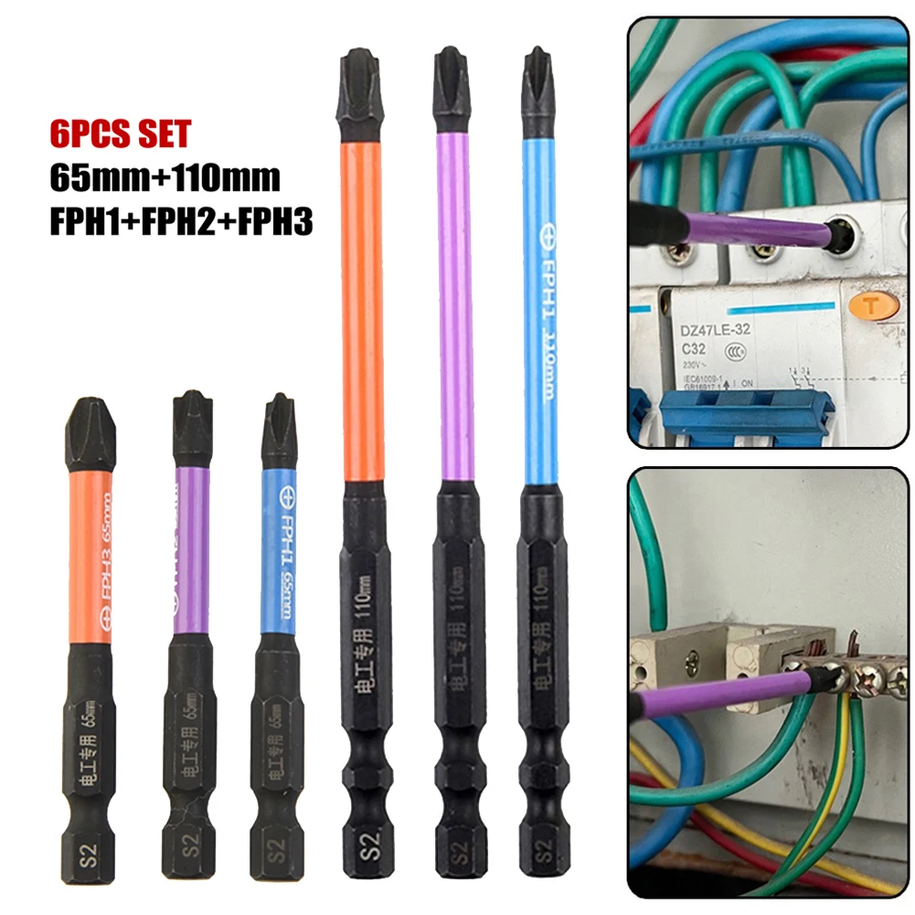 Совершенно новые насадки для отверток 65 мм/110 мм, легированная сталь HRC63, магнитные, стойкие к ржавчине, специальные щелевые насадки для электрика PH1/PH2
