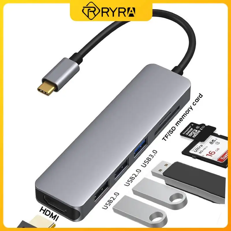 Совместимая док-станция RYRA 6 в 1 для MacBook, USB-разветвитель типа C 3,0