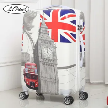 LeTrend Retro British style Rolling Luggage Spinner 24 inch Suitcase Wheels 20 inch Students Carry on Trolley Travel Bag Trunk