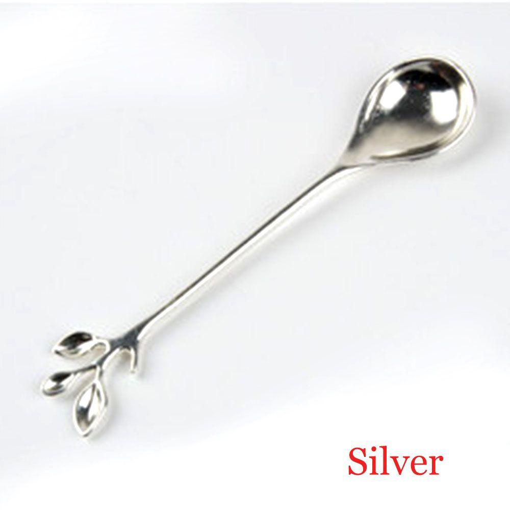 Совок Королевский стиль Ветвь Столовая посуда Мини десертная ложка Маленькая кофейная ложка Столовые приборы серебряный