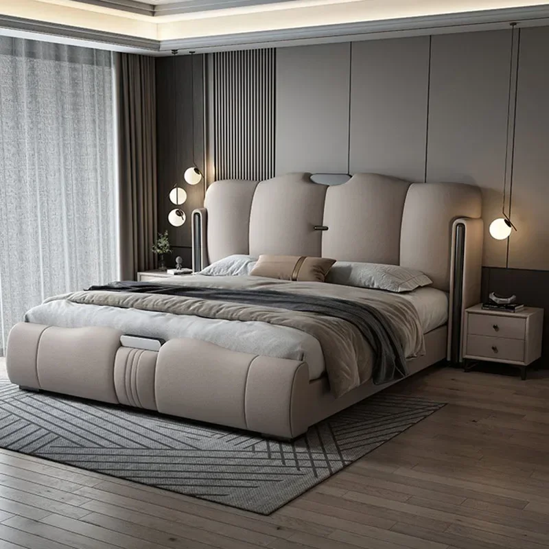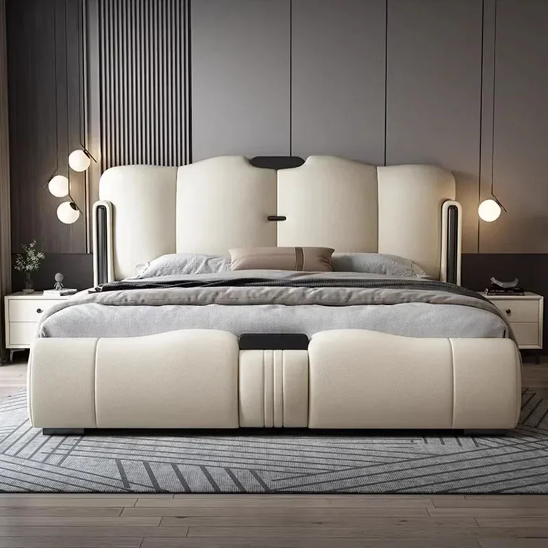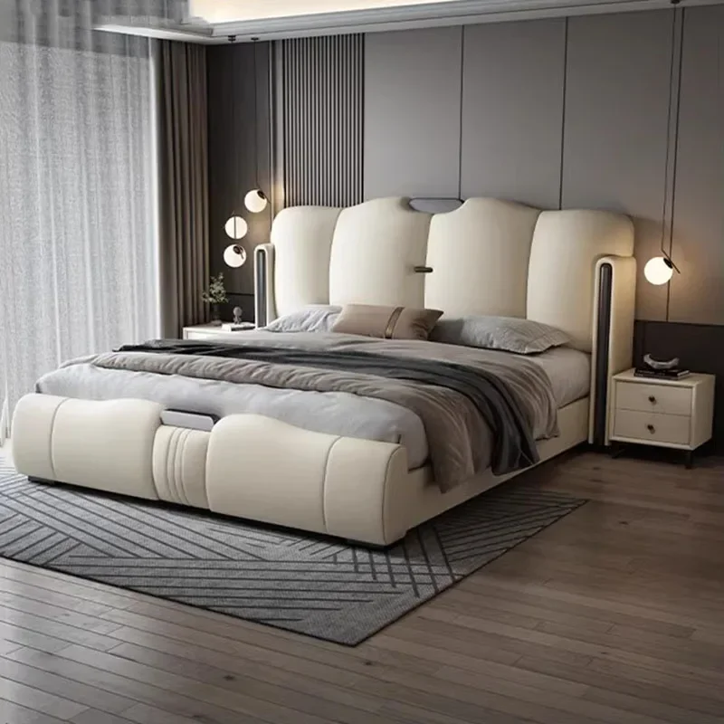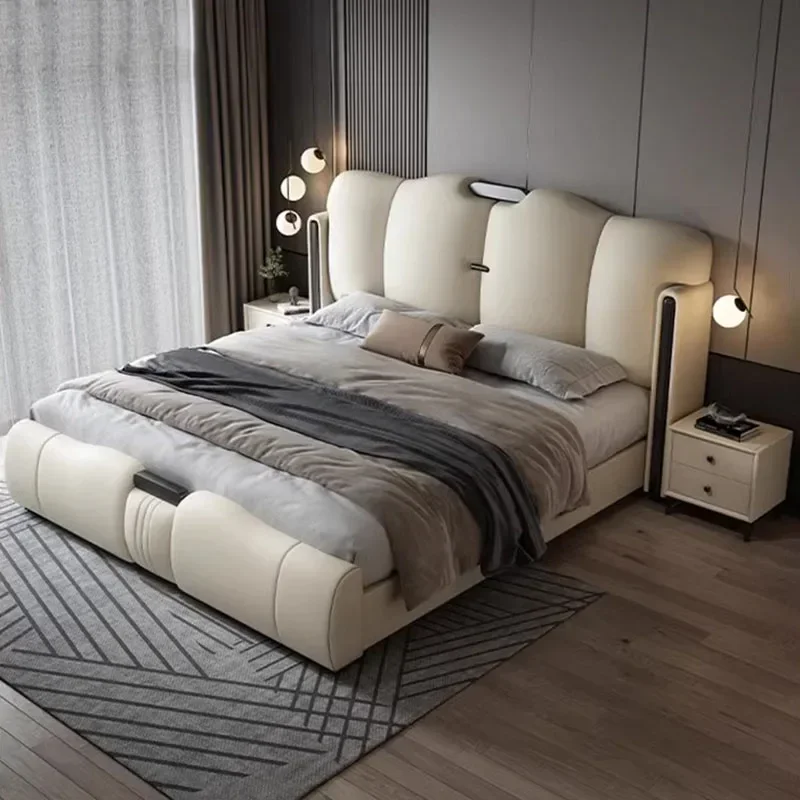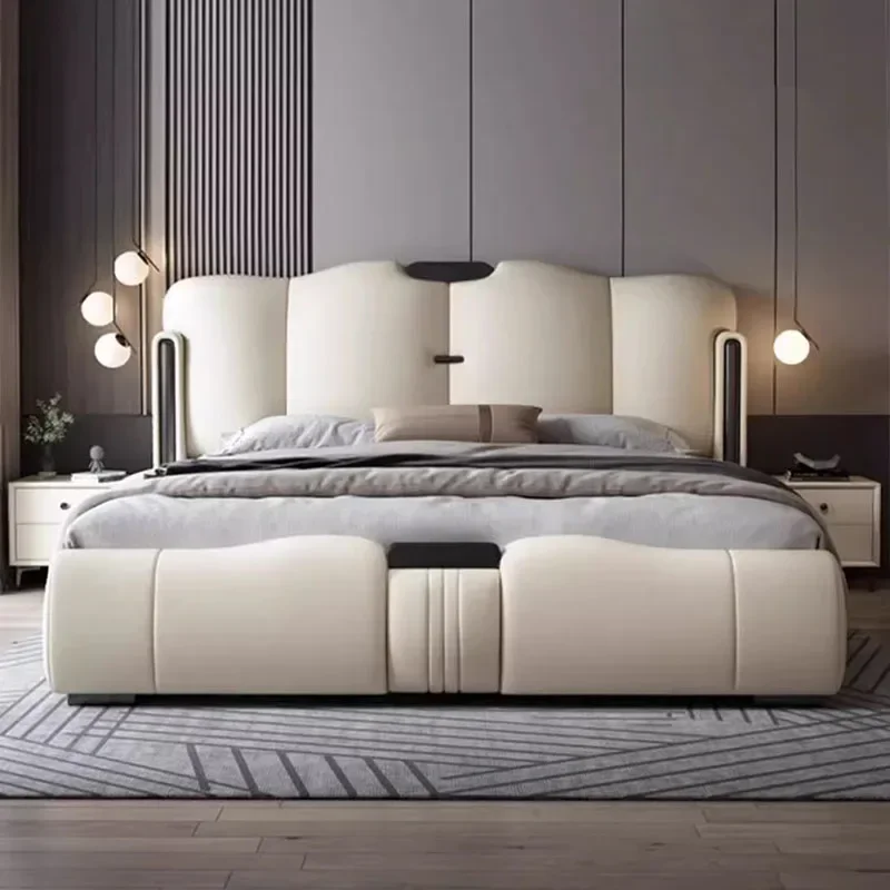 Современная Европейская двуспальная кровать в скандинавском стиле, водонепроницаемая роскошная двуспальная кровать, белая натуральная кожа, домашняя мебель