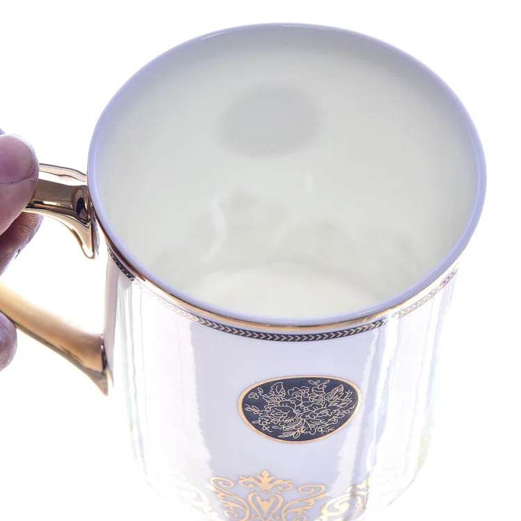 Современная Минималистичная керамическая кружка, европейская роскошная кружка с золотой ручкой из костяного фарфора для молока и кофе, мод...