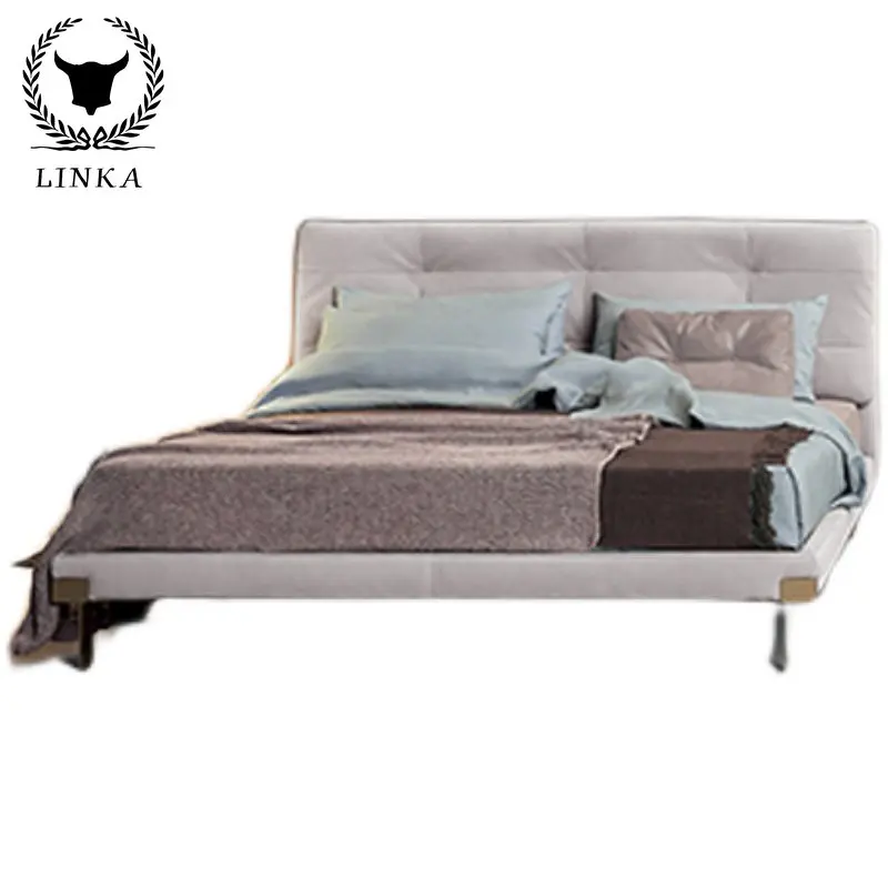 Современная Минималистичная тканевая кровать, итальянская зеркальная Роскошная сетчатая Красная кожаная двуспальная кровать 1,8 м, кожаная Главная спальня