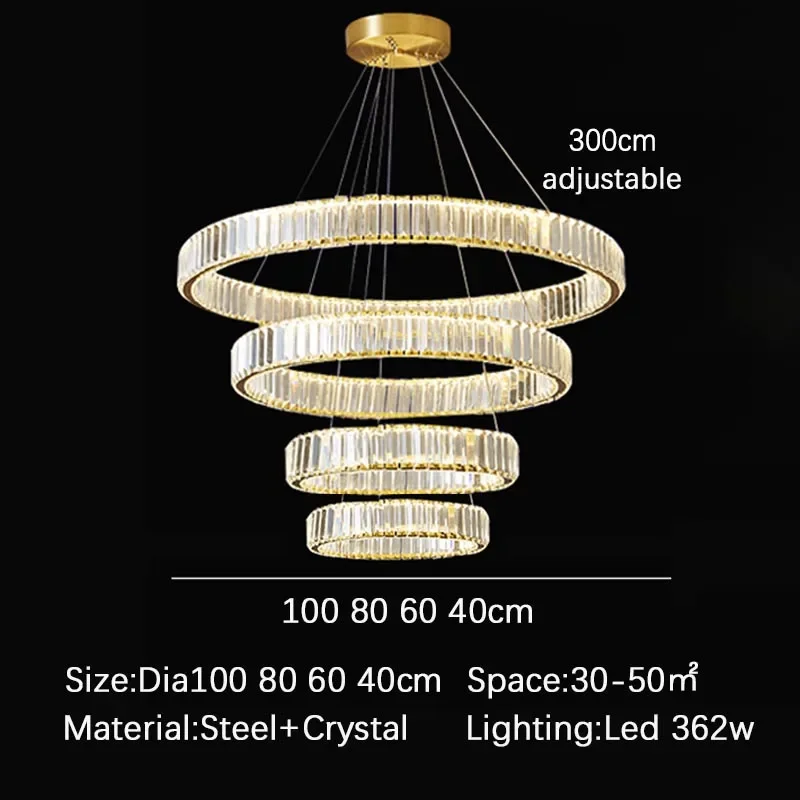 Современная Потолочная Люстра, Спальня, Столовая, Гостиная, Хрустальные Подвесные Светильники, Украшение Интерьера, Кольцо, Блестящее Золотое Освещение