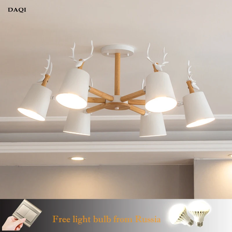 Современная Потолочная люстра в скандинавском стиле, лампа для спальни, гостиной, деревянная лампа E27 для потолка в отеле, освещение с оленьими рожками для ресторана, оптовая продажа