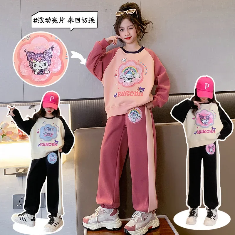 Sanrios Cinnamoroll Anime Kawaii Girls Casual Sports Two Piece Set Autumn and Winter Plush Thickened Sweater Set Christmas Gifts