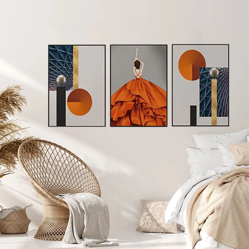 Современная абстрактная декоративная живопись Простая подвесная картина Высококачественная Тройная настенная живопись Большая спальня