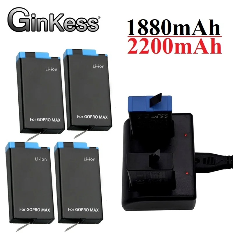 Обновленная аккумуляторная батарея 1880/2200 мАч для GoPro Max, литиевая аккумуляторная батарея для Go pro max 360, аккумуляторы для экшн-камеры, аксессуа...