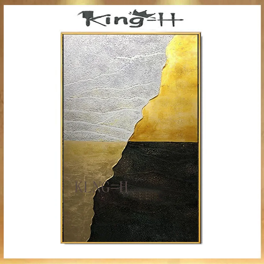 Современная золотая акриловая Настенная картина в скандинавском стиле, чистая ручная картина маслом на холсте, Настенная картина для гости...