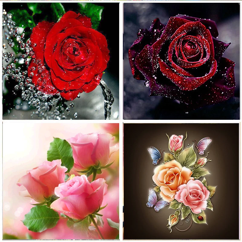 5D DIY Diamond Painting Full Diamond Red Flower Embroidery Set Mosaic Cross Stitch picture Rhinestone Home Decoration Handmade