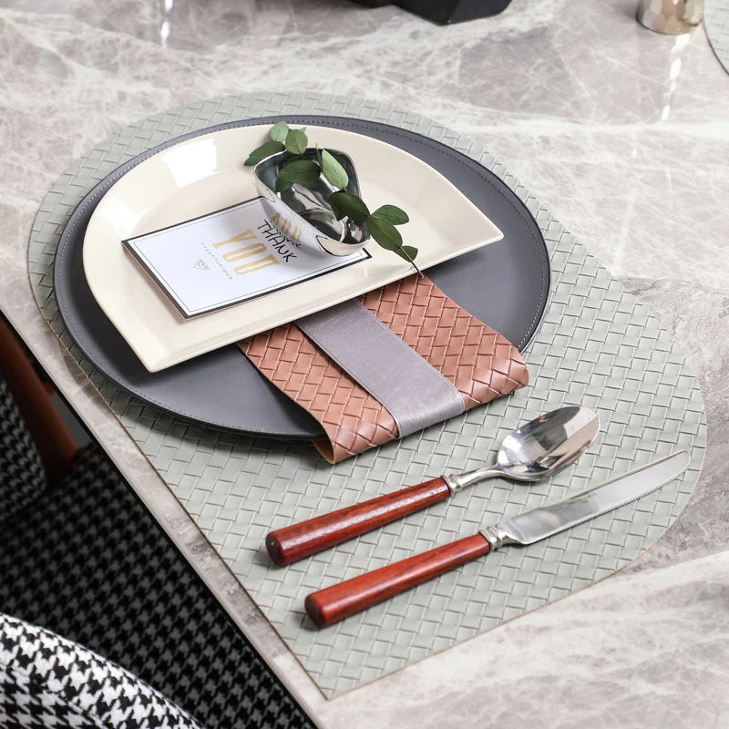 Современная модель в скандинавском стиле, украшение для офиса и обеденного стола, набор столовых приборов, коврик из кожи в западном стиле д...