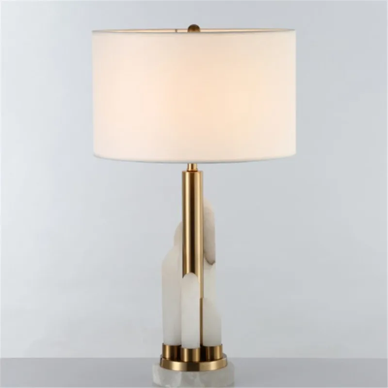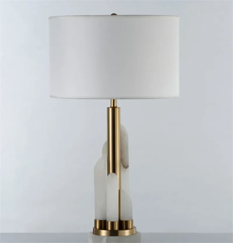 Современная настольная лампа, роскошная домашняя прикроватная Ночная настольная лампа для спальни для гостиной, с изображением каменной кладки, Золотая Металлическая лампа с тканевым оттенком