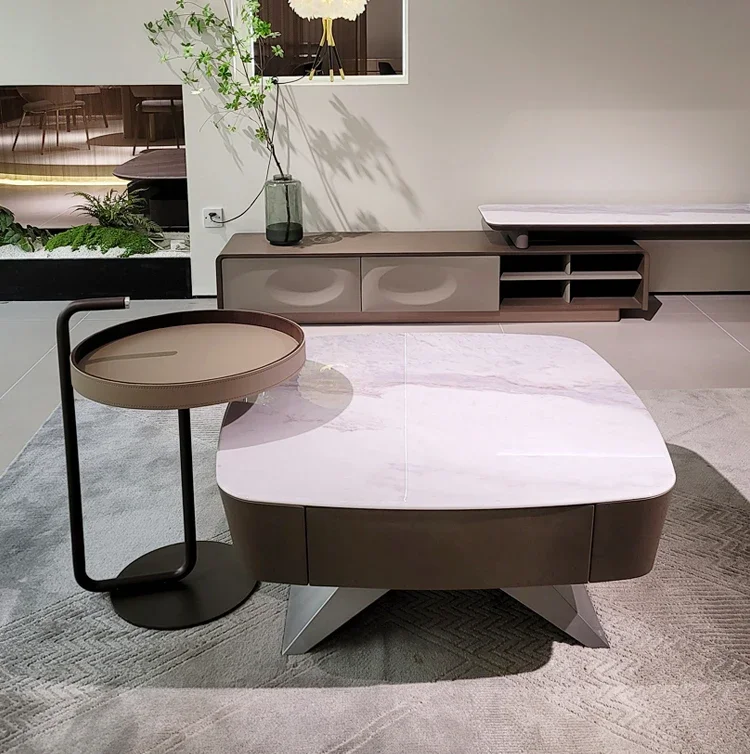 Современная простая гостиная, светлая, роскошная итальянская минималистичная маленькая квартира, квадратный мраморный ящик, журнальный столик для гостиной