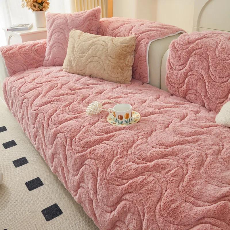 Современная и простая длинношерстная плюшевая однотонная подушка для дивана, универсальная для четырех сезонов, ультрамягкая, толстая, противоскользящая, полотенце для подушки дивана 70x90cm 1pcs