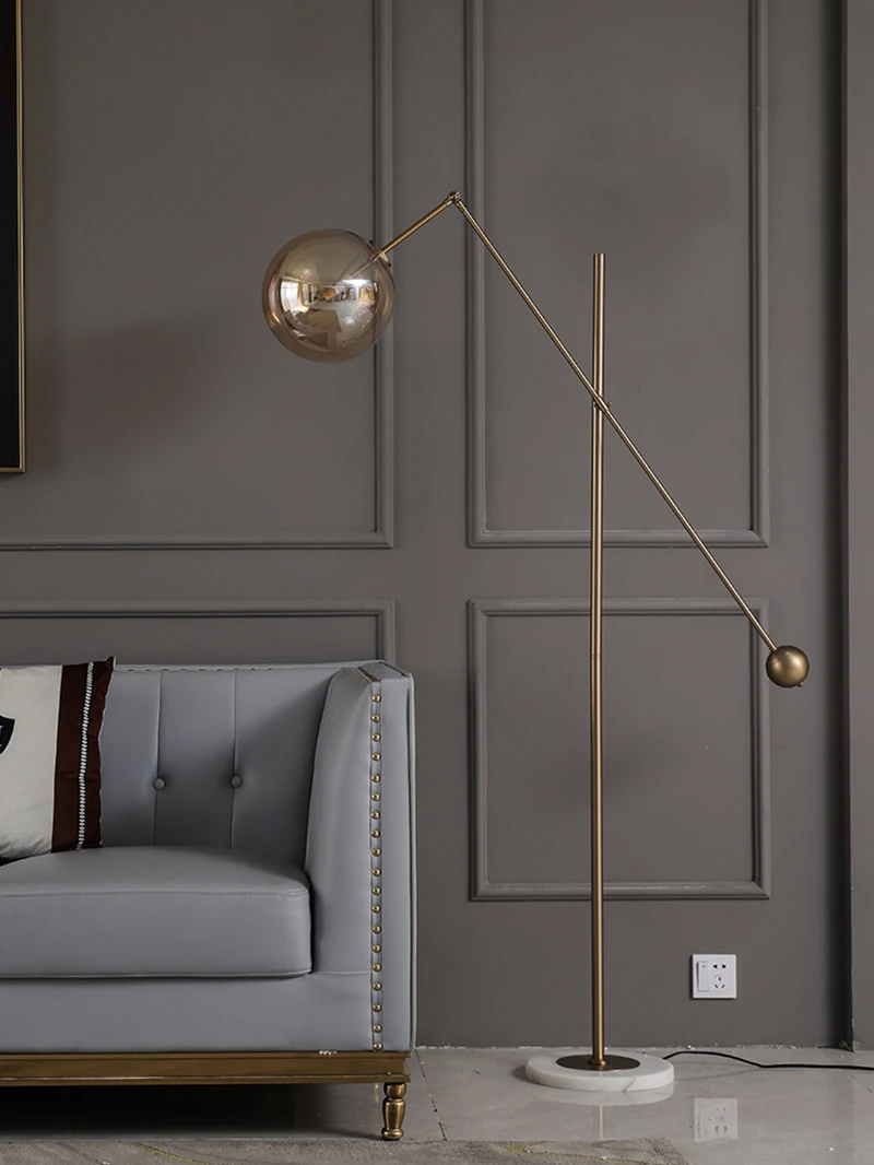 Современная простая дымчато-серая Янтарная стеклянная мраморная основа, латунная металлическая гостиная, диван, прикроватная домашняя светодиодная напольная лампа