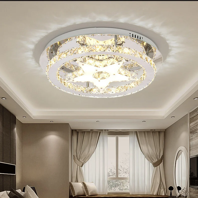Современная простая круглая светодиодная хрустальная лампа со звездами, атмосферная лампа для гостиной, креативная Хрустальная потолочна...
