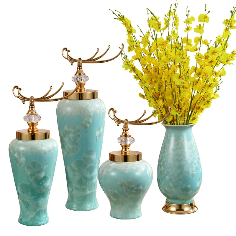 Современная роскошная ваза в стиле ретро, керамические украшения, поделки, Цветочная композиция для гостиной, сушеный цветочный горшок, укр...