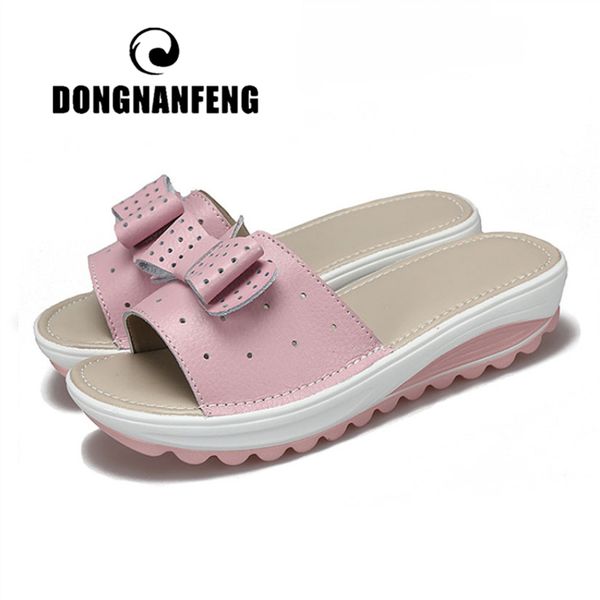 dongnanfeng women female ladies genuine leather shoes platform sandals slipper outdoor summer cool beach bow 41 42 blac-1792, Black