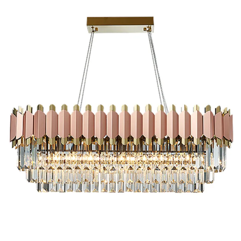 Современная роскошная люстра цвета розового золота, дизайнерская Модель виллы, прямоугольная хрустальная Светодиодная лампа для украшения свадьбы