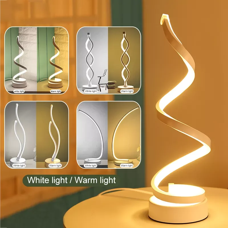 Современная светодиодная спиральная настольная лампа, изогнутая настольная прикроватная лампа, холодный белый, теплый белый свет для гост...