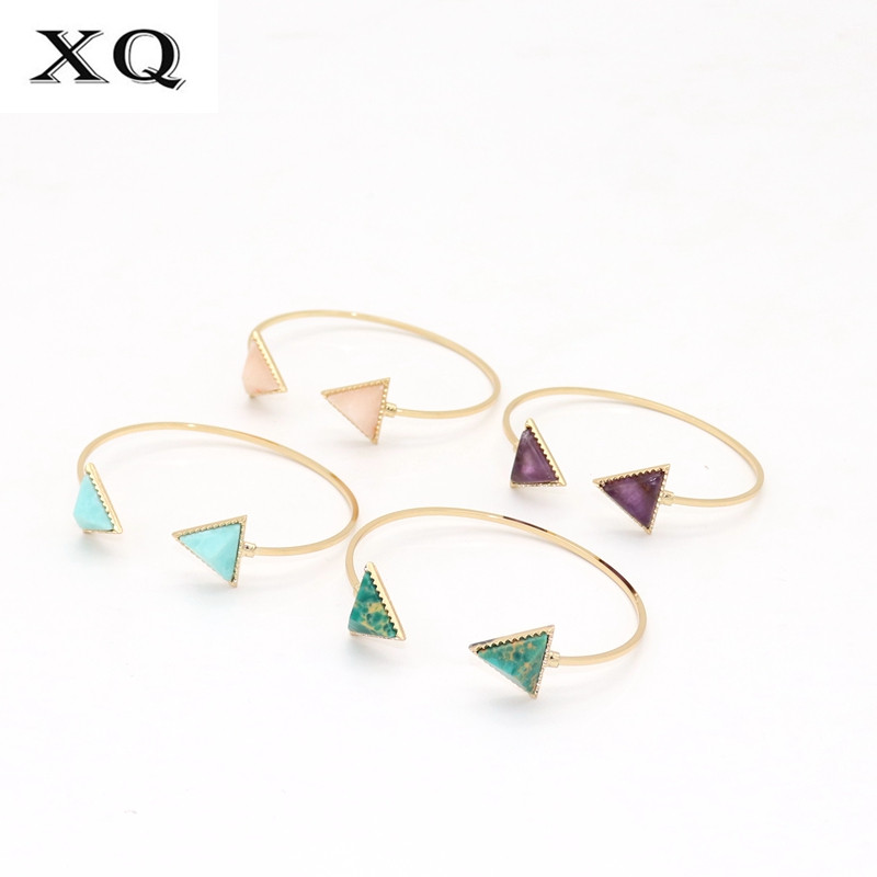 XQ new ladies fashion purple stone triangle elegant fresh blue green alloy bracelet opening jewelry wholesale party gifts