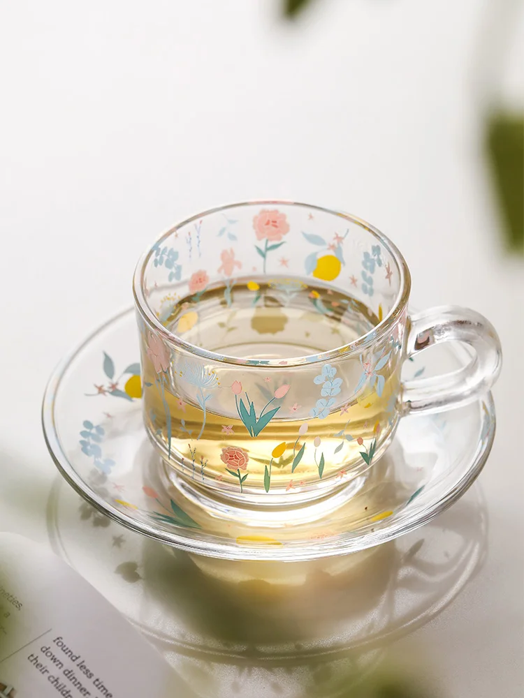 Современная стеклянная кофейная чашка в скандинавском стиле, забавная Милая прозрачная модная кофейная чашка и блюдце, мультяшная кружка с...