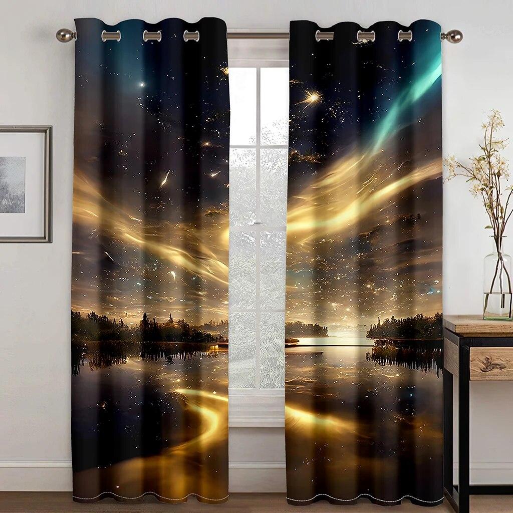 Современная черная галактическая Аврора в ночном небе, бесплатная доставка, тонкие 2 панели, оконная занавеска для спальни, гостиной, домашний декор с крючками