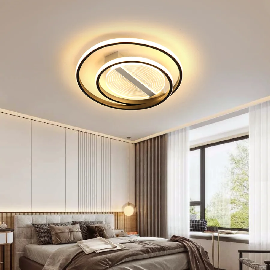 Современная черная потолочная лампа, светодиодный светильник с двумя кольцами, металлический акриловый верхний светильник для помещений, для спальни, гостиной, кафе, отеля