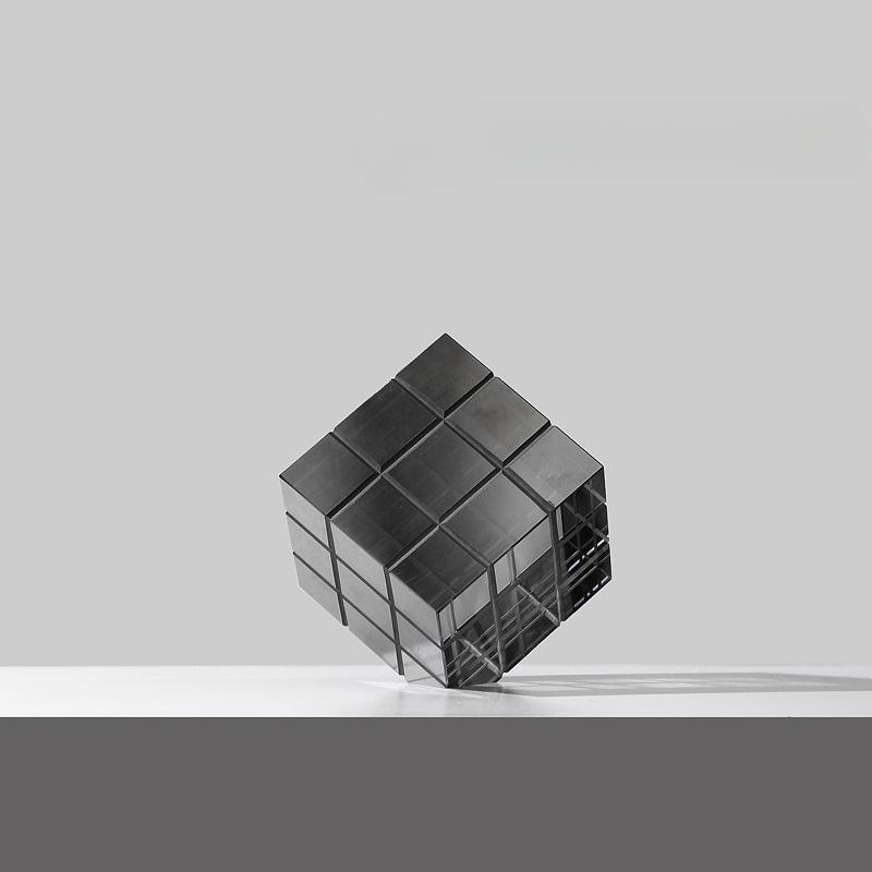 Современное минималистское искусство Трехмерные геометрические стеклянные прозрачные крестообразные орнаменты Гостиная Кабинет Офис Украшения Мебель Rubik s Cube Smoke Grey - Small