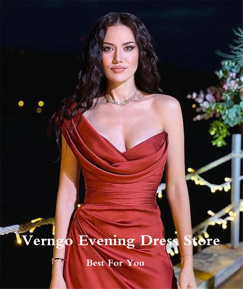 Современное темно-красное шелковое атласное длинное платье Verngo на одно плечо, плиссированное вечернее платье до пола с Боковым Разрезом, 2021
