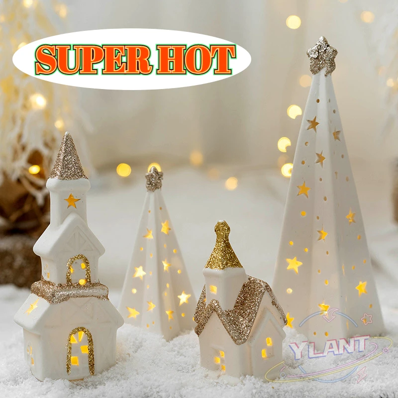 Современные керамические поделки, светящиеся огни, Рождественское украшение, домашняя настольная статуя, украшения, Санта-Клаус, лось, пира...