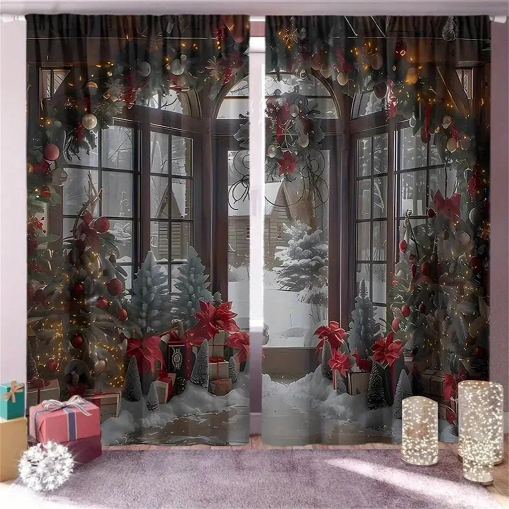 Современные рождественские полиэстеровые шторы для дверного проема - комплект из 2 шт. Праздничная цифровая печать, машинная стирка, праздничный декор для гостиной W100X240H(cm)x2Pcs&Grommet Top