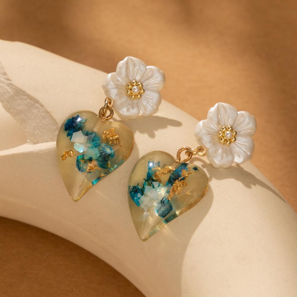 Современные серьги-пусеты в форме сердца с полимерными цветами 2023 женские