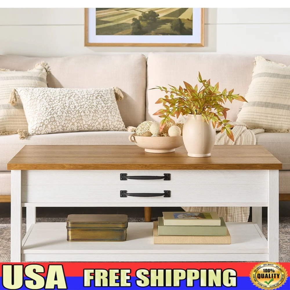 Современный журнальный столик с подъемным верхом в фермерском доме со скрытой открытой полкой для хранения, универсальная рабочая поверхность, алебастр, светлая медовая отделка в помещении