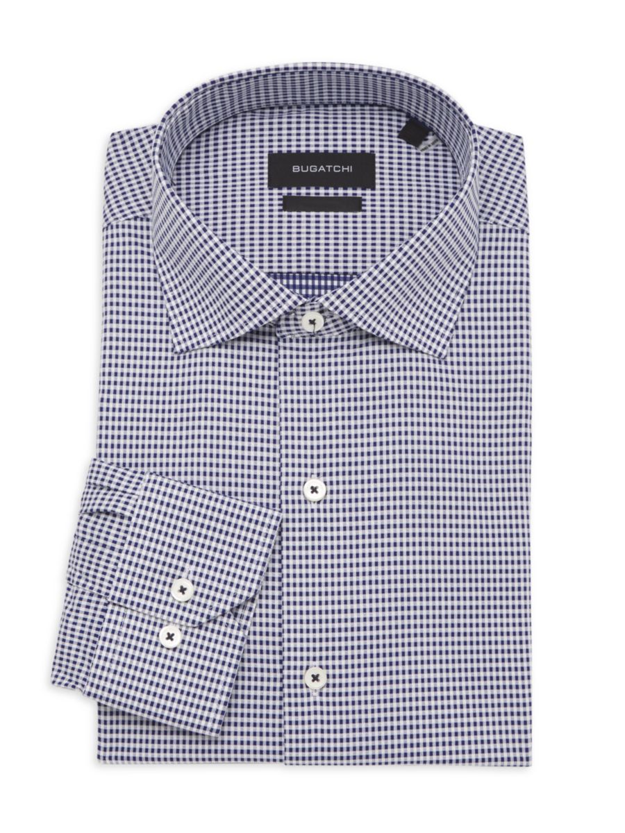 Рубашка в клетку гингем с комфортным эластичным кроем Bugatchi, темно-синий