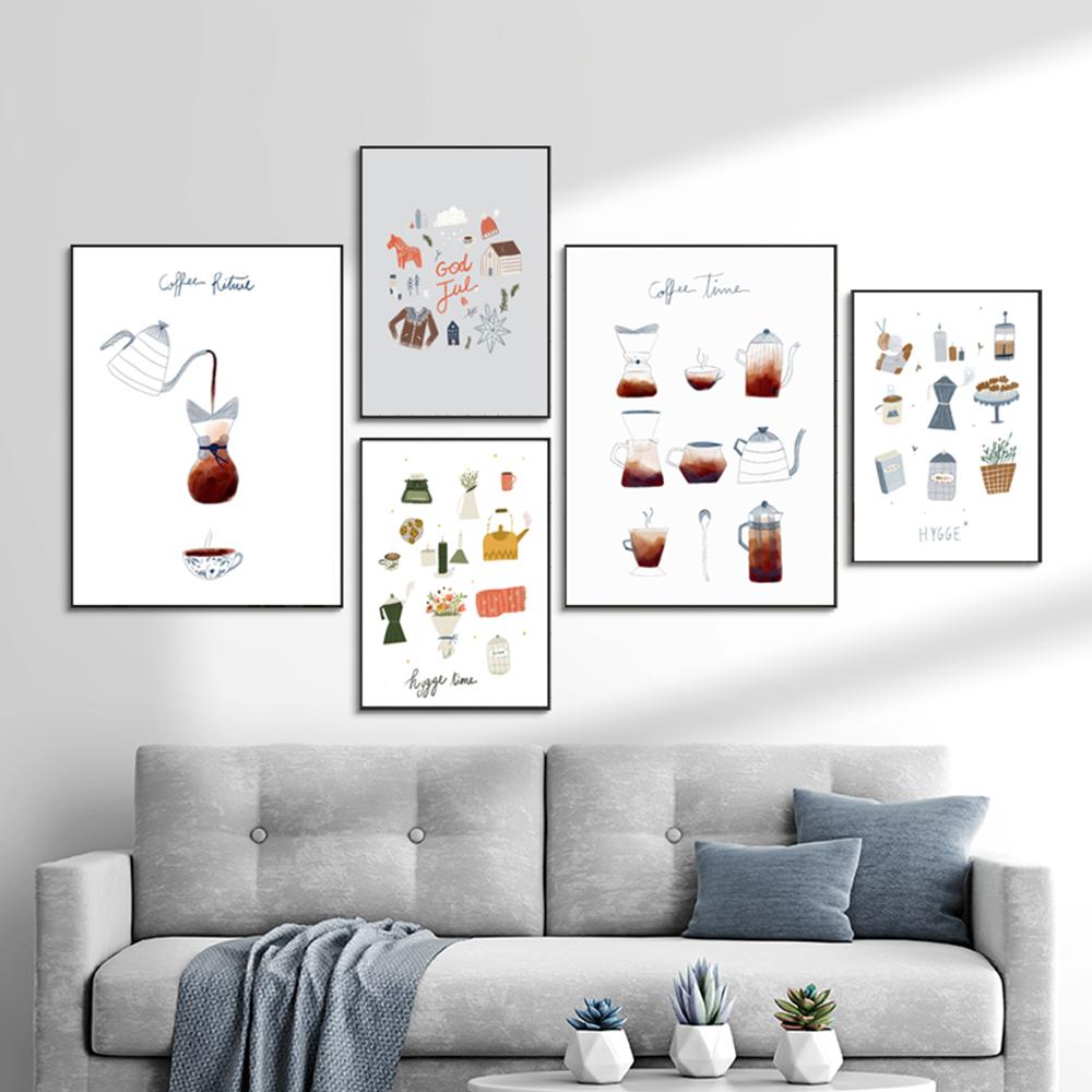 Современный кофейник, холст, картина, принт, плакат, чашка кафе, художественная картина на холсте, настенные панно для кухни, бара, кафе, декор, без рамки 21cm×30cm NoFrame
