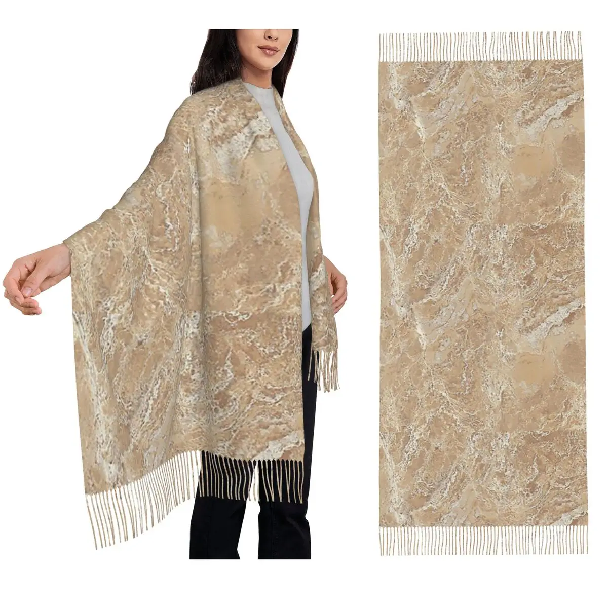 Современный кремовый бежевый песчаный камень, гранитный мраморный шарф, шарфы с кисточками, женские шали и накидки, большая осенне-зимняя шаль