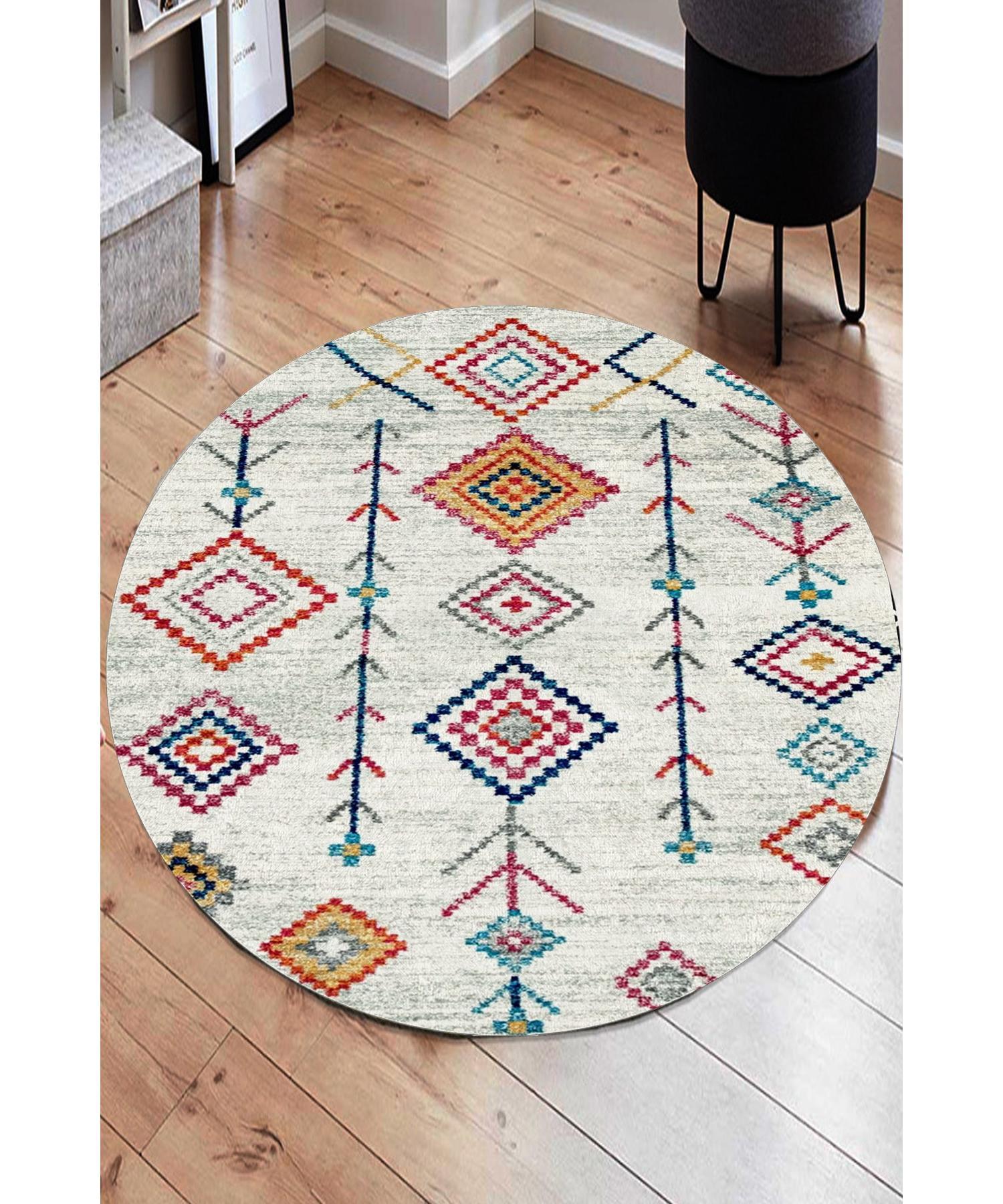 Современный круглый ковер с квадратным узором Cappio (НЕСКОЛЬЗЯЩАЯ КОЖАНАЯ ОСНОВА, ПРИГОДНАЯ МАШИННАЯ СТИРКА) - cp658