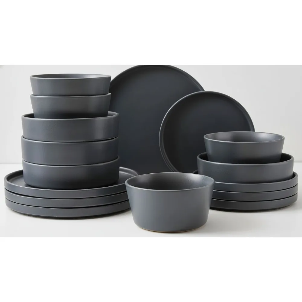 Современный набор столовой посуды из камня, 16 предметов для семьи из 4 человек, серые матовые миски и тарелки, можно мыть в посудомоечной машине